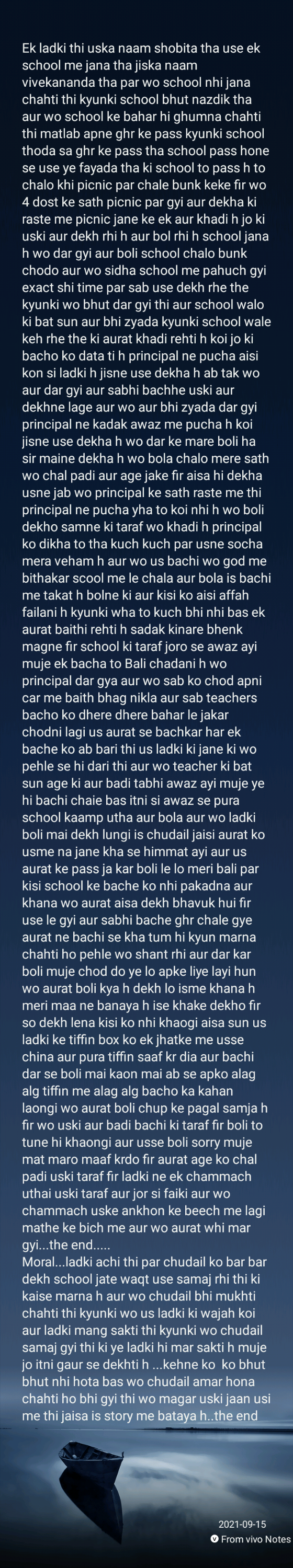 Ek din aisa hua ki ek ladka bhar gya aur dekha ki ladki dubri h wo shant tha fir dekha ki dur se ek signal aa rha fir dekha ki char taxi si aa rhi h fir wo dono shant ho gye ..kahani aisi h ki yahi se start karo fir ek chiz dono ne dekha ki yaha par ek lakda leta h jahan par ek aur aurat thi jo ek dum naked leti fir aisa hua ki ladki ke sath ek aur aurat kiska naam puja tha wo late si ho rhi thi fir aisa hua dono uski aur age bade ki ek ladka jiska nam vivek uski aur bada aur fir bat huyi ki ye kha se aagya kyunki dono practice kr rhe the acting ki real lage par wo dono shant rhe par ek chiz dono keh rhe the shor machaenge ki ke acting kr rhe h lekin wo shant se the fir aga bda vivek chaku badaya aur us ladki jo naked thi us par hath fer kar rape ki koshish kr rha tha matlab rape jone hi wala tha ki wo ladka bhar nikala samundra se ki ek naon aur ayi aur us par goliyan chalane lage ki ek aur jahaz samne aya aur dono us jahaz par chad e lge aur jo naked thi wo behosh si thi par ek ek chiz bhul rhi thi ki wo ladki vivek se mili thi matlab pooja lekin rape nhi hua ki wo dono ladke aur ladki ship par chad hi gye the ki main aur dono us par chakuyon se waar krne lge aur koi nhi pahucha unke pass na ki police aur koi admi kyunki jab 8 hi baje the par ek chiz common tha unme ki wo bhut hi zyada pyar krte the ek dusre se vivek aur pooja par age hi ship pahuchne wala tha ki sea wali police aa gyi unke pass aur dono ko bacha kia wo dono terrorist se jude huye the jo ki bhut hi Terror wali organization se jude huye the par dono ek hi chiz chahte the ki kal se ek jugad se ye terror organization chod de kyunki bad me unko suicide hi Krna padega kyunki terrorist bond ban ke kyunki dono pyar kr baithe the akhri lavz I love u bol kar dono mar h kahani yahan se start hoti h ki ek admi tha wo dono ko bacha ke andar baithe police ko bula rhe the ki kal se hum chutti lenge aur chutti ke waqt dono ko ek dusro ko ek hi awaz me bulaenge aur khana denge let bar kar aur puchenge ki kal se kya start hoga matlab dono ek dusre ke just friends the aur wo samje ki gf bf fir ek ladki ayi jiska nam richa tha wo raw se thi aur dono ko dekh kr ek hi question puch rhi thi ki kya dekha unme dhyan se wo boli kuch nhi ladka bola ki dekha wo tha ek sone ki Anguri jo ki bhut hi mehangi thi kyunki usme Heera laga hua tha wo officer samaj gyi ki dono angez matlab suicide bomb ka case h matlab wo boli ki dono ko chod de aur age ki soche ki wo kha aur kisse mile aur fir ye jahaz kha se aya jo ki dub hi rha tha aur wo in dono ko hi kyu marna chah rhe the aur ladki kyu chup thi fir aisa hua ki ladka wha ek jahaz ke pass gya aur un dono ki wajah se kyu mar gya aur us ladke ki history ek neta se mili kyunki wo neta tha ek bhut hi bada business man ko ki bhut hi garib family se mila hua tha jo ki ladki ki shadi ke liye ye suicide bombing ka case kra rhi thi ye richa officer ki soch thi ladki ka nam tha Ayushi aur ladke ka tha Vimal bas kahani ka end h sir ya madam fir ek jahaz aya jo ki raw center ke pass hi tha usne weed mela aur pehle wale me coke jo ki dubne hi wala tha to ye shak dur ho gya us officer ka ki jahaz dubne wala koi lalach nhi krta kyunki jahaz to dubne hi wala tha to sara shak ispe tha kyunki sabko pta h bade neta ka beta Vimal police ki hirasat me h aur neta bhi gayab tha to ye case kaise solve ho wo officer puch rhi thi par ek jahaz tha ya naon si jo ki unko bacha rhi thi kha h yaha ke police officer uneh jaldi bulao wo jahaz ko ruk wane gye h fir ye jahaz kiska h wo soch me pad gye par ek jayaz tha jo ki dur se dikhai de rha tha wo tha police officer ka jo ki us jahaz ka picha kr rha tha wo officer ko salute hi krne wali thi ki jahaz ko wo dur jane ko keh rha tha kyunki wo us ladki ke papa ka jahaz ka tha fir kya tha wo officer jor se shout kiya aur dono us officer ke piche pad gye ki ye uske papa ka nhi fir kya tha us officer ne jaise taise us jahaz ko pakad waya aur jo bhi tha usme wo us jahaz ke jariya nikal waya isme ganja upar tha aur coke niche ab kya tha raw ne us officer ko suspend kiya aur us officer ki jagah dusra officer lag waya jo ki bhut hi imandar aur nek tha fir kya tha case solve hi ho rha tha ki ek angrezi mam ayi aur usse boli ki kya kya jaye dono ka ladke aur ladke ka wo dono to acting kr rhe the..wo boli ek dum real..ap wha kya kr rhi thi muje yaha ake dono ne btaya wo boli dono juth bhi bol sakti h aisa bhi ho skta h wo boli dono sach bol rhe h alag alag pucha fir kya tha us mam ne ek hi saans par dono ko goli mar di wo shocked thi aisa kyu kiya wo boli ki ye method acting kaise real ho sakti h ye boli aur dono ko usi jahaz ki aur bade ki bomb visfot huya aur dono usi time marte marte bache wo boli kitte police officer tum bachate bachate un do logo ko bachane me kho dia tum kon ho ye batao wo dono shant ho gye aur ek dusre ki taraf goli ka ishara. Krne wale hi the ek police officer aa gya aur dono ko rok diya wo mam pehle se janti thi ki ye imandar aur nek h wo us par nishana Dane hi lagi ki wo bola mam ye meri galti h maine hi sabko nhi bataya ki ye raw agent h bas ye jante ki ye raw se h wo jhuk gyi aur salam Thoka fir kya tha age ki kahani ap socho mam dono sochne lge ye ship dono ke the aur wo naked woman ka real me rape ho gya tha aur wo bach kr khi chala gya matlab wo charon hi mile the aur wo koi aur nhi balki neta tha aur wo ladki wo unhone acting ke liye uksaya aur paise diye sirf 5oo rupaye ye tha neta ka guroor ki filmon me laonga aur ladka ladki ka ki garib hum bhi nhi kyunki uska baap pehle bhut hi bda gangster tha aur wo terrorists nhi the balki nakli police thi isliye jahaz ko jane diya…ye h story ki kahani..the end…